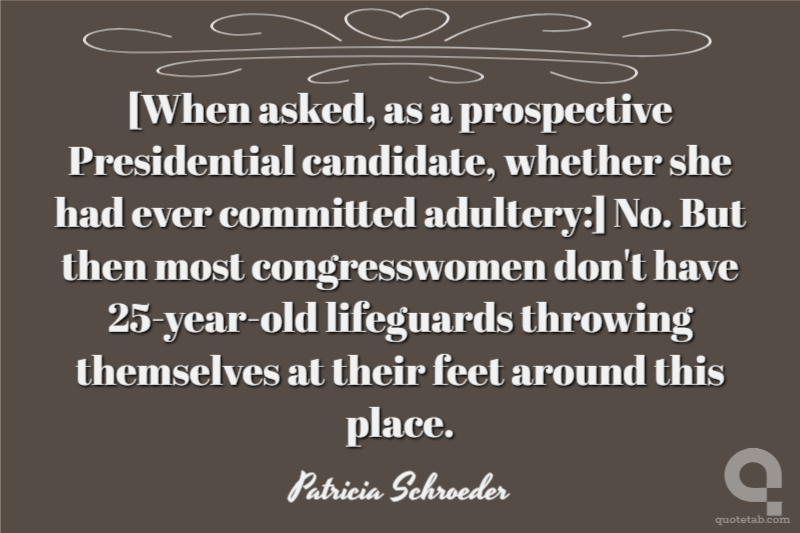 [When asked, as a prospective Presidential candidate, whether she had ever committed adultery:] No. But then most congresswomen don't have 25-year-old lifeguards throwing themselves at their feet around this place.