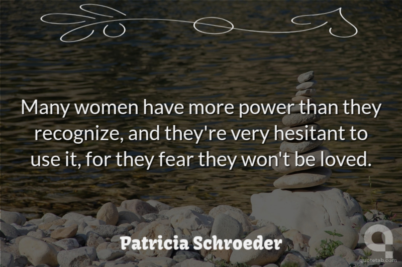 Many women have more power than they recognize, and they're very hesitant to use it, for they fear they won't be loved.
