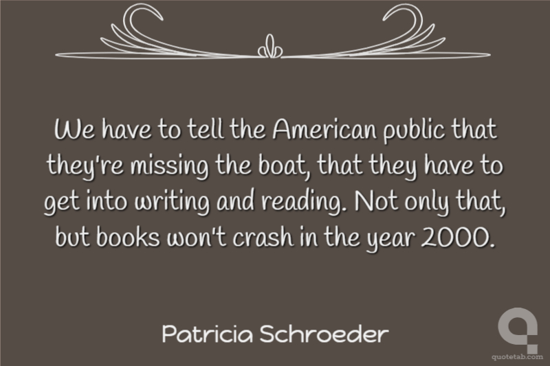 We have to tell the American public that they're missing the boat, that they have to get into writing and reading. Not only that, but books won't crash in the year 2000.