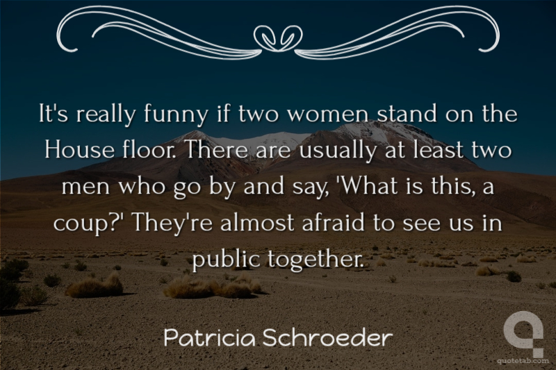 It's really funny if two women stand on the House floor. There are usually at least two men who go by and say, 'What is this, a coup?' They're almost afraid to see us in public together.