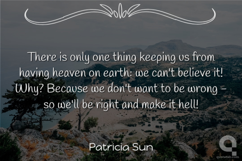 There is only one thing keeping us from having heaven on earth: we can't believe it! Why? Because we don't want to be wrong - so we'll be right and make it hell!