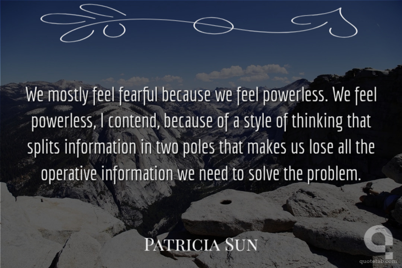 We mostly feel fearful because we feel powerless. We feel powerless, I contend, because of a style of thinking that splits information in two poles that makes us lose all the operative information we need to solve the problem.