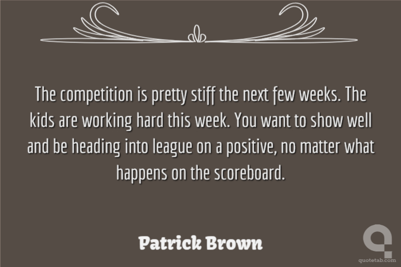 The competition is pretty stiff the next few weeks. The kids are working hard this week. You want to show well and be heading into league on a positive, no matter what happens on the scoreboard.