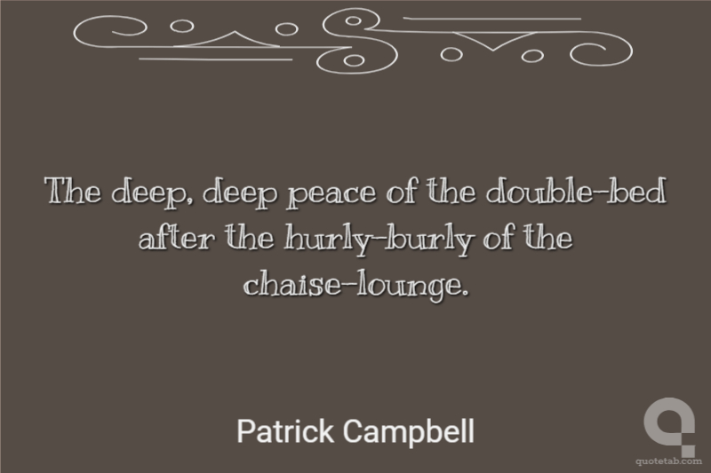 The deep, deep peace of the double-bed after the hurly-burly of the chaise-lounge.