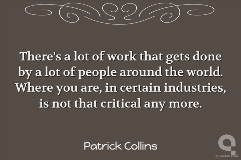 There's a lot of work that gets done by a lot of people around the world. Where you are, in certain industries, is not that critical any more.