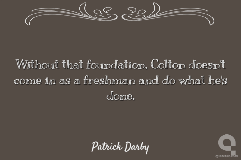 Without that foundation, Colton doesn't come in as a freshman and do what he's done.