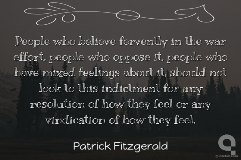 People who believe fervently in the war effort, people who oppose it, people who have mixed feelings about it, should not look to this indictment for any resolution of how they feel or any vindication of how they feel.