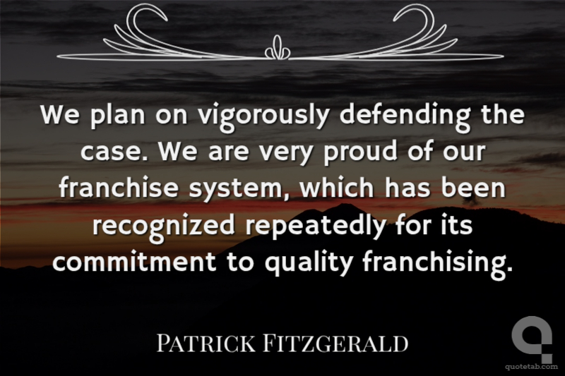 We plan on vigorously defending the case. We are very proud of our franchise system, which has been recognized repeatedly for its commitment to quality franchising.