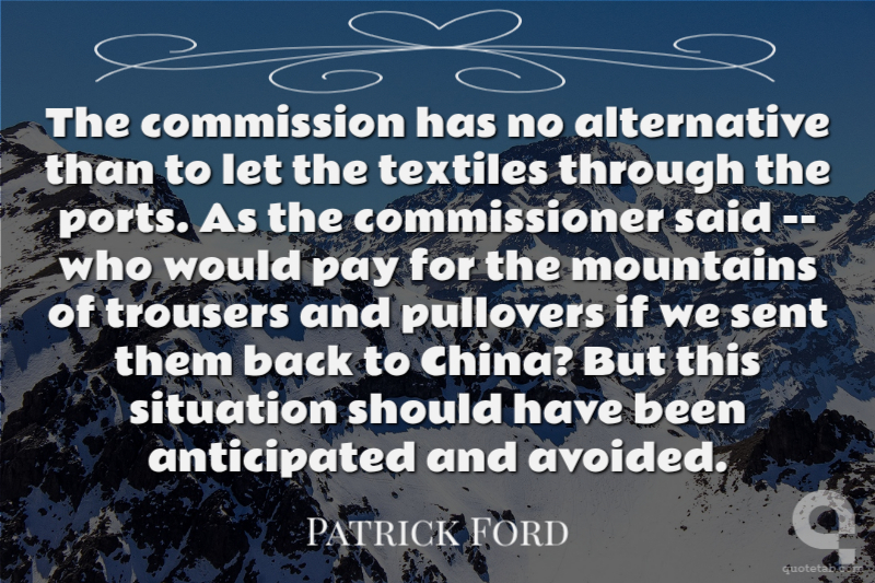 The commission had no alternative than to let the textiles through the ports, ... As the commissioner said - who would pay for the mountains of trousers and pullovers if we sent them back to China? But this situation should have been anticipated and avoided.