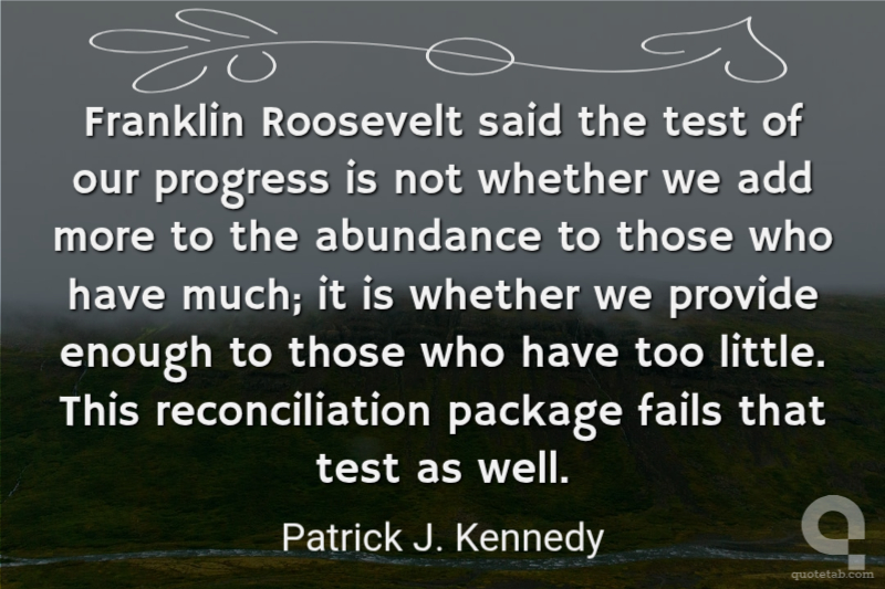 Franklin Roosevelt said the test of our progress is not whether we add more to the abundance to those who have much; it is whether we provide enough to those who have too little. This reconciliation package fails that test as well.