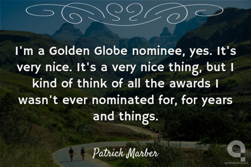 I'm a Golden Globe nominee, yes. It's very nice. It's a very nice thing, but I kind of think of all the awards I wasn't ever nominated for, for years and things.