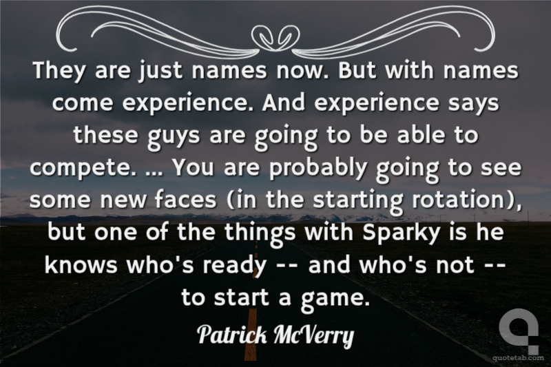 They are just names now. But with names come experience. And experience says these guys are going to be able to compete. ... You are probably going to see some new faces (in the starting rotation), but one of the things with Sparky is he knows who's ready -- and who's not -- to start a game.