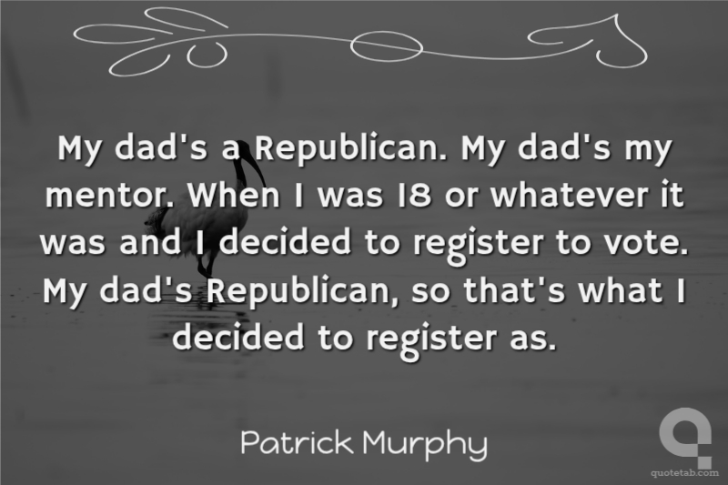 My dad's a Republican. My dad's my mentor. When I was 18 or whatever it was and I decided to register to vote. My dad's Republican, so that's what I decided to register as.