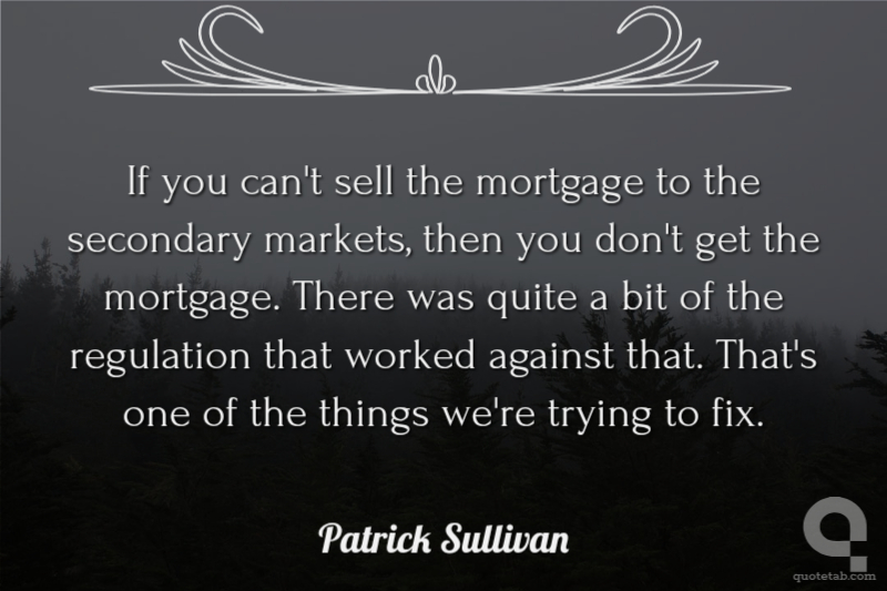 If you can't sell the mortgage to the secondary markets, then you don't get the mortgage. There was quite a bit of the regulation that worked against that. That's one of the things we're trying to fix.