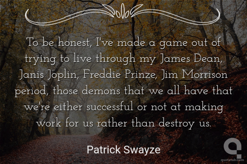 To be honest, I've made a game out of trying to live through my James Dean, Janis Joplin, Freddie Prinze, Jim Morrison period, those demons that we all have that we're either successful or not at making work for us rather than destroy us.