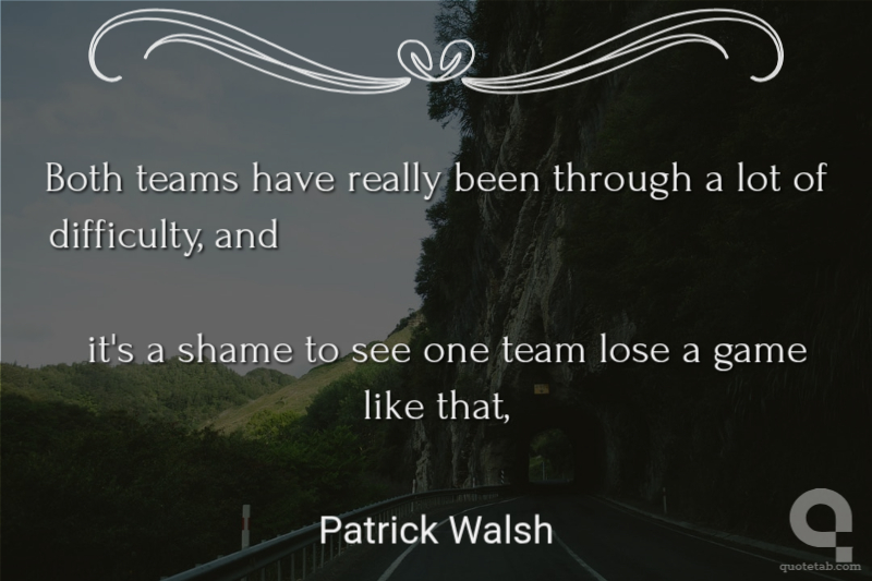 Both teams have really been through a lot of difficulty, and it's a shame to see one team lose a game like that,
