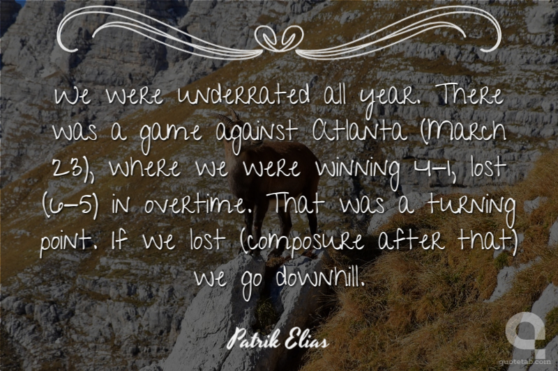 We were underrated all year. There was a game against Atlanta (March 23), where we were winning 4-1, lost (6-5) in overtime. That was a turning point. If we lost (composure after that) we go downhill.