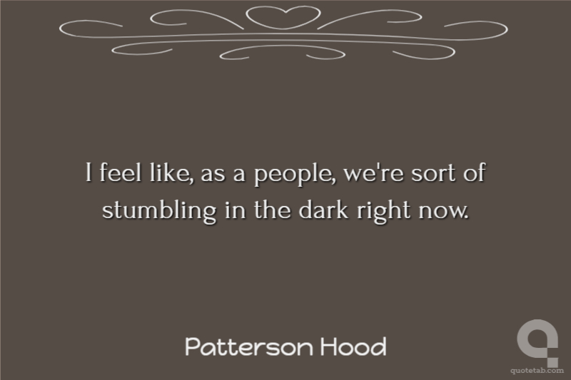 I feel like, as a people, we're sort of stumbling in the dark right now.