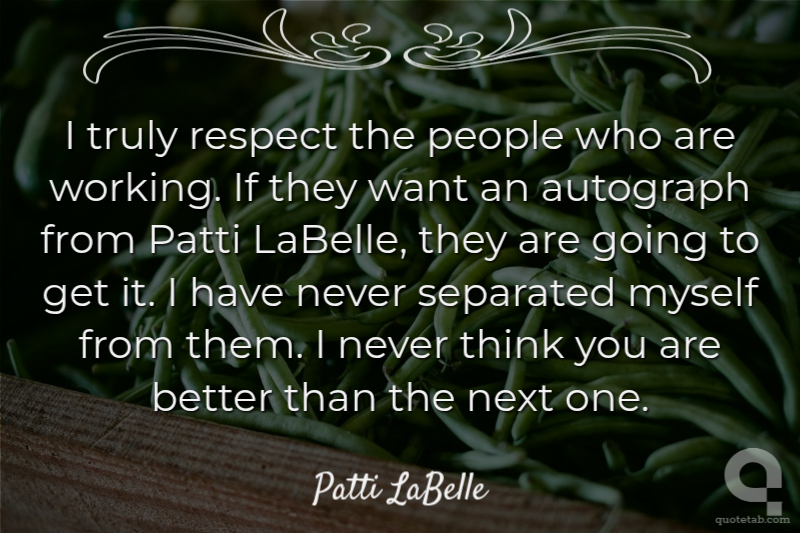 I truly respect the people who are working. If they want an autograph from Patti LaBelle, they are going to get it. I have never separated myself from them. I never think you are better than the next one.
