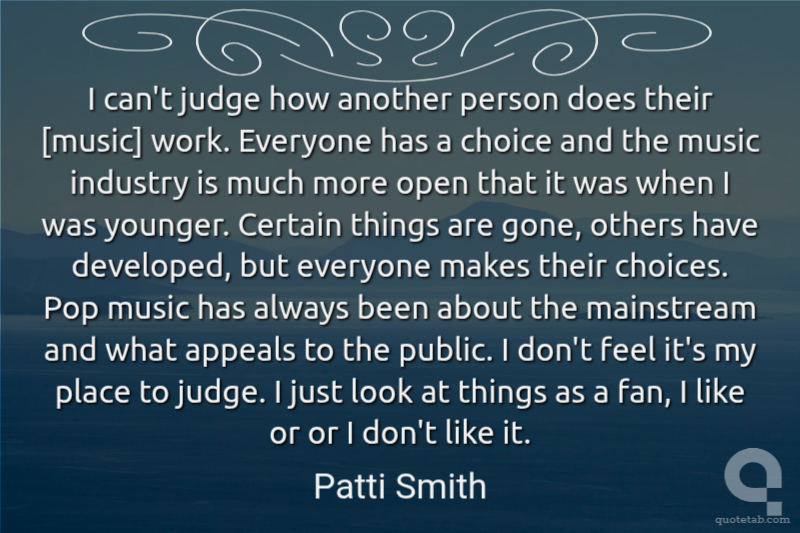 I can't judge how another person does their [music] work. Everyone has a choice and the music industry is much more open that it was when I was younger. Certain things are gone, others have developed, but everyone makes their choices. Pop music has always been about the mainstream and what appeals to the public. I don't feel it's my place to judge. I just look at things as a fan, I like or or I don't like it.