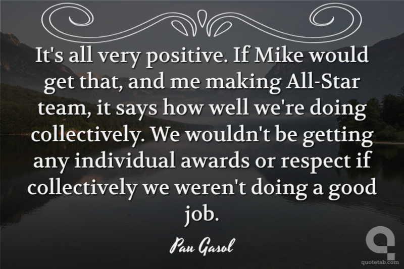 It's all very positive. If Mike would get that, and me making All-Star team, it says how well we're doing collectively. We wouldn't be getting any individual awards or respect if collectively we weren't doing a good job.
