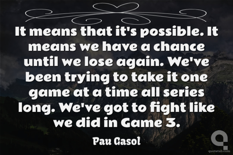 It means that it's possible. It means we have a chance until we lose again. We've been trying to take it one game at a time all series long. We've got to fight like we did in Game 3.