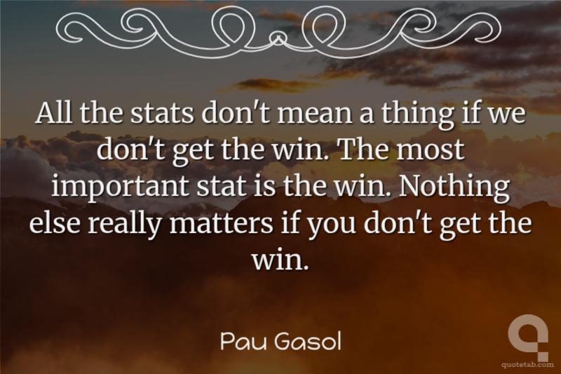 All the stats don't mean a thing if we don't get the win. The most important stat is the win. Nothing else really matters if you don't get the win.