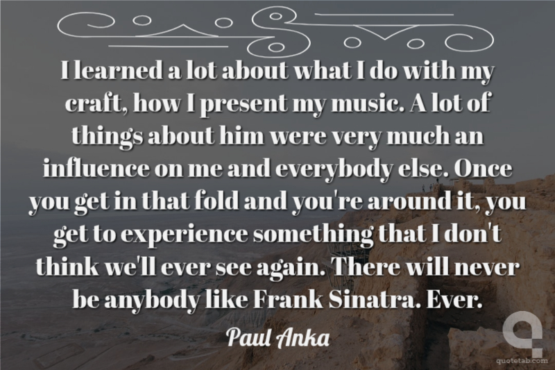 I learned a lot about what I do with my craft, how I present my music. A lot of things about him were very much an influence on me and everybody else. Once you get in that fold and you're around it, you get to experience something that I don't think we'll ever see again. There will never be anybody like Frank Sinatra. Ever.