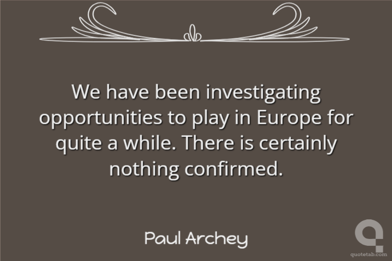 We have been investigating opportunities to play in Europe for quite a while. There is certainly nothing confirmed.