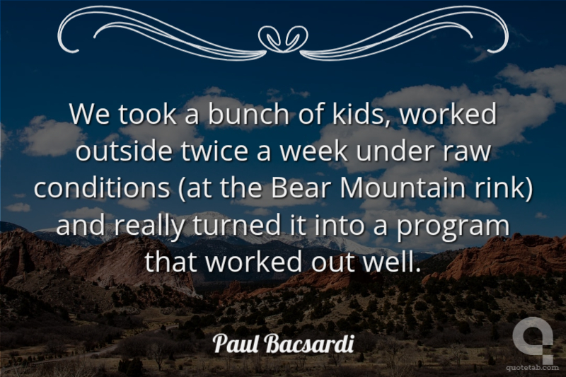 We took a bunch of kids, worked outside twice a week under raw conditions (at the Bear Mountain rink) and really turned it into a program that worked out well.