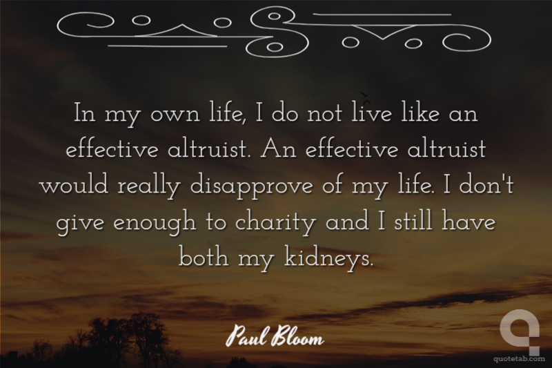 In my own life, I do not live like an effective altruist. An effective altruist would really disapprove of my life. I don't give enough to charity and I still have both my kidneys.