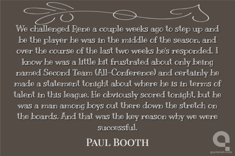 We challenged Rene a couple weeks ago to step up and be the player he was in the middle of the season, and over the course of the last two weeks he's responded. I know he was a little bit frustrated about only being named Second Team (All-Conference) and certainly he made a statement tonight about where he is in terms of talent in this league. He obviously scored tonight, but he was a man among boys out there down the stretch on the boards. And that was the key reason why we were successful.