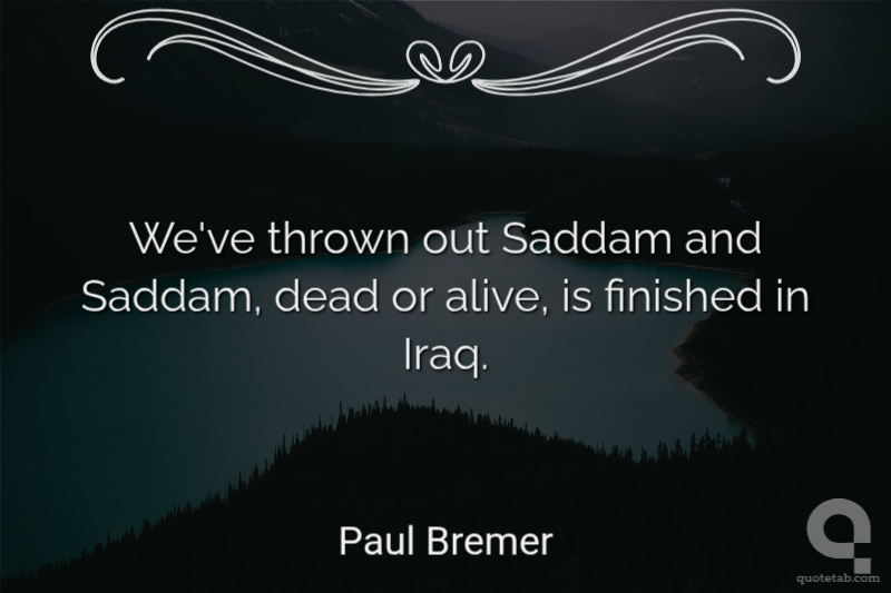 We've thrown out Saddam and Saddam, dead or alive, is finished in Iraq.