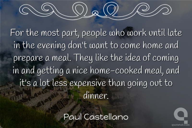 For the most part, people who work until late in the evening don't want to come home and prepare a meal. They like the idea of coming in and getting a nice home-cooked meal, and it's a lot less expensive than going out to dinner.