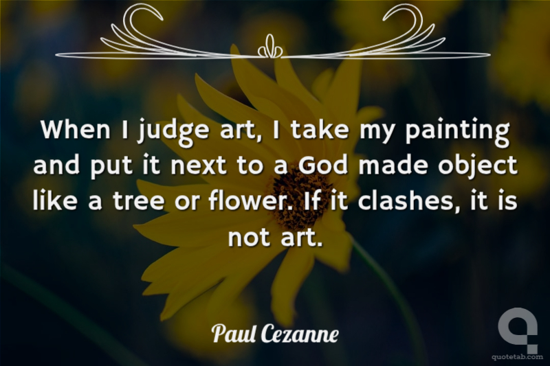 When I judge art, I take my painting and put it next to a God made object like a tree or flower. If it clashes, it is not art.