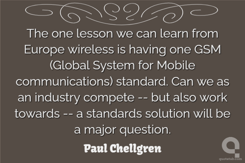 The one lesson we can learn from Europe wireless is having one GSM (Global System for Mobile communications) standard. Can we as an industry compete -- but also work towards -- a standards solution will be a major question.