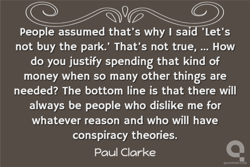 People assumed that's why I said 'Let's not buy the park.' That's not true, ... How do you justify spending that kind of money when so many other things are needed? The bottom line is that there will always be people who dislike me for whatever reason and who will have conspiracy theories.
