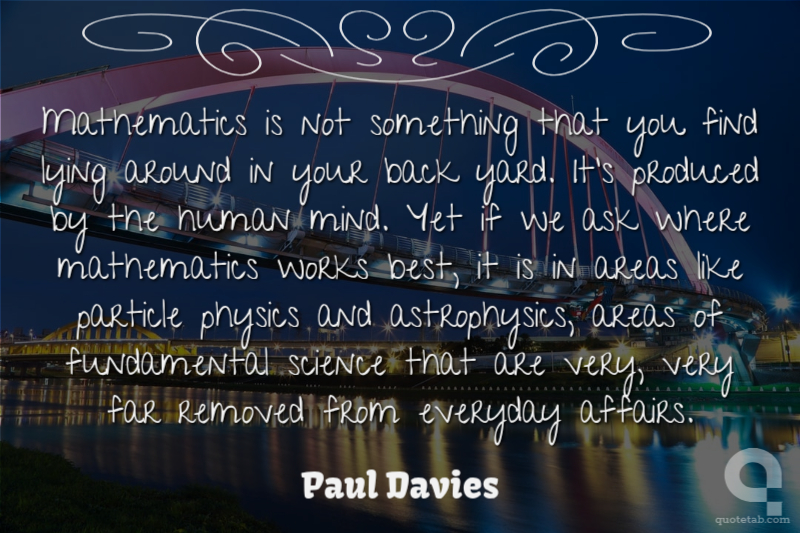 Mathematics is not something that you find lying around in your back yard. It's produced by the human mind. Yet if we ask where mathematics works best, it is in areas like particle physics and astrophysics, areas of fundamental science that are very, very far removed from everyday affairs.