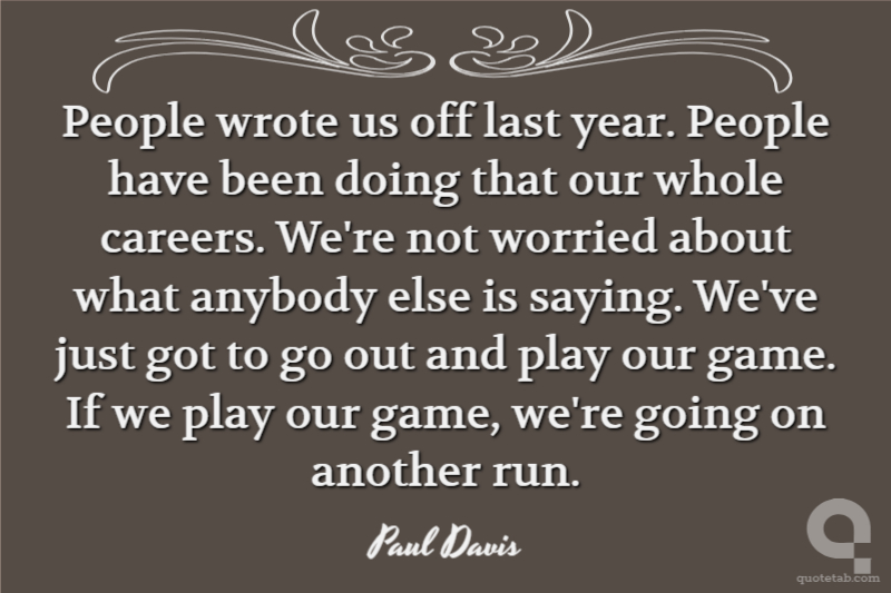 People wrote us off last year. People have been doing that our whole careers. We're not worried about what anybody else is saying. We've just got to go out and play our game. If we play our game, we're going on another run.