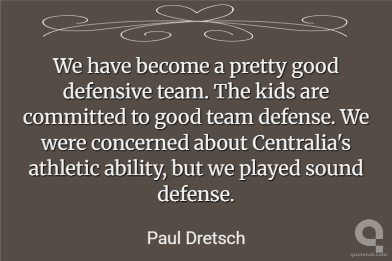 We have become a pretty good defensive team. The kids are committed to good team defense. We were concerned about Centralia's athletic ability, but we played sound defense.