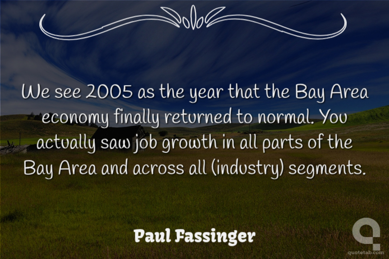 We see 2005 as the year that the Bay Area economy really, finally returned to normal, where you actually started to see job growth in all parts of the Bay Area. We're not really talking about boom times for the bay. We're talking slow to moderate growth, but in the normal range of things.