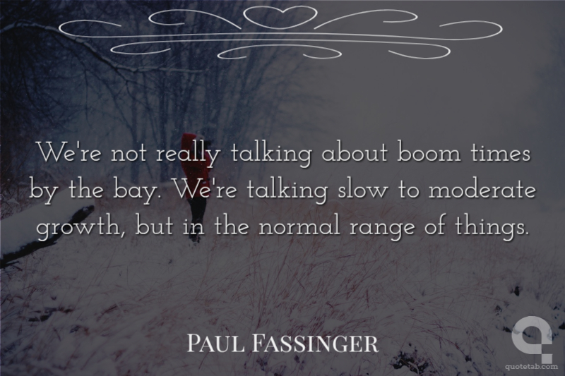 We're not really talking about boom times by the bay. We're talking slow to moderate growth, but in the normal range of things.