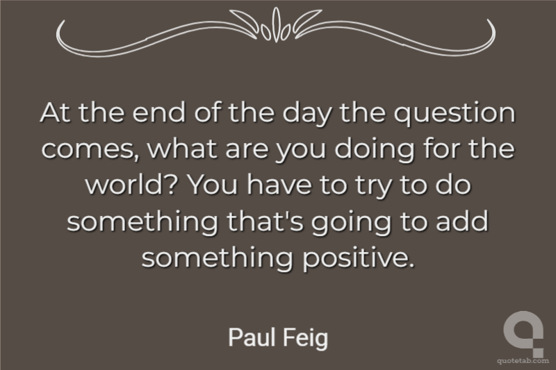 At the end of the day the question comes, what are you doing for the world? You have to try to do something that's going to add something positive.