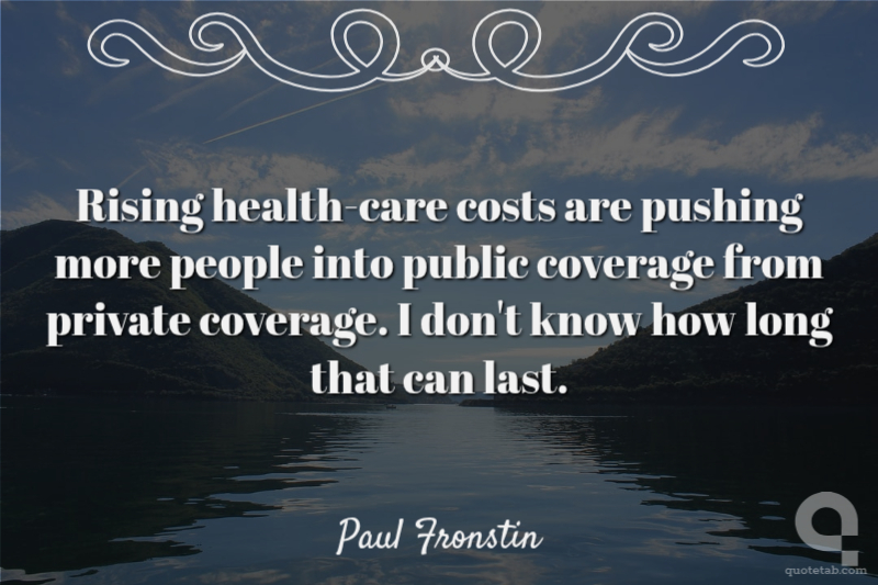 Rising health-care costs are pushing more people into public coverage from private coverage. I don't know how long that can last.