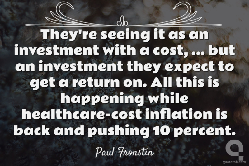 They're seeing it as an investment with a cost, ... but an investment they expect to get a return on. All this is happening while healthcare-cost inflation is back and pushing 10 percent.