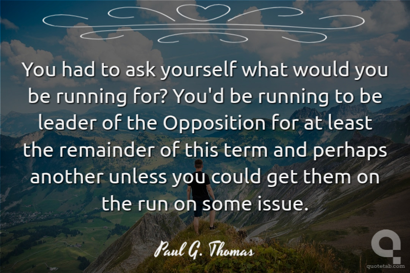 You had to ask yourself what would you be running for? You'd be running to be leader of the Opposition for at least the remainder of this term and perhaps another unless you could get them on the run on some issue.