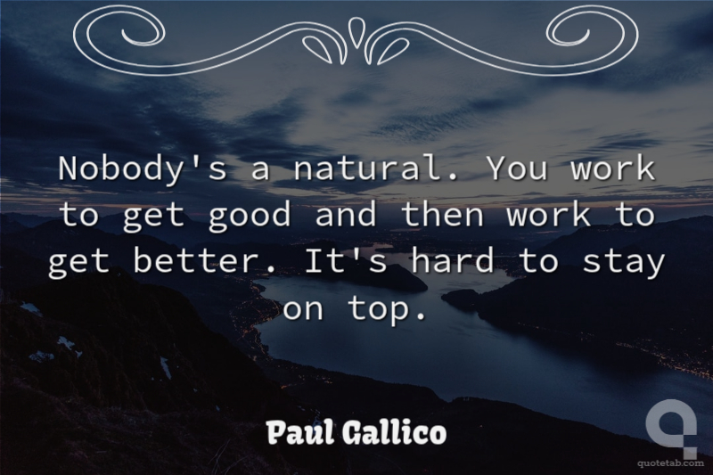 Nobody's a natural. You work to get good and then work to get better. It's hard to stay on top.