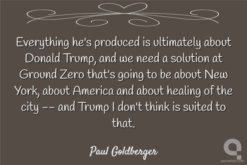 Everything he's produced is ultimately about Donald Trump, and we need a solution at Ground Zero that's going to be about New York, about America and about healing of the city -- and Trump I don't think is suited to that.