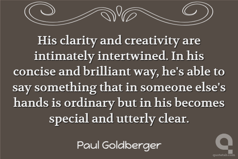 His clarity and creativity are intimately intertwined. In his concise and brilliant way, he's able to say something that in someone else's hands is ordinary but in his becomes special and utterly clear.