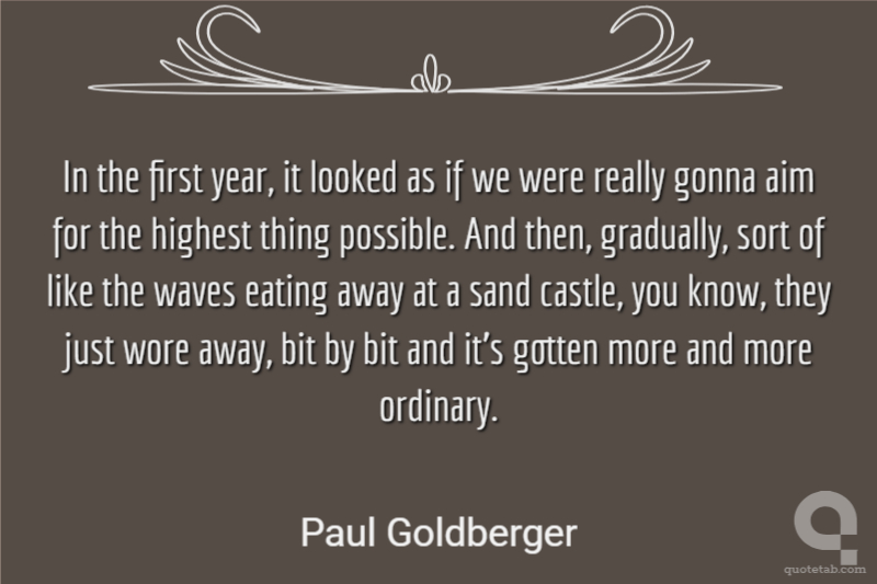 In the first year, it looked as if we were really gonna aim for the highest thing possible. And then, gradually, sort of like the waves eating away at a sand castle, you know, they just wore away, bit by bit and it's gotten more and more ordinary.
